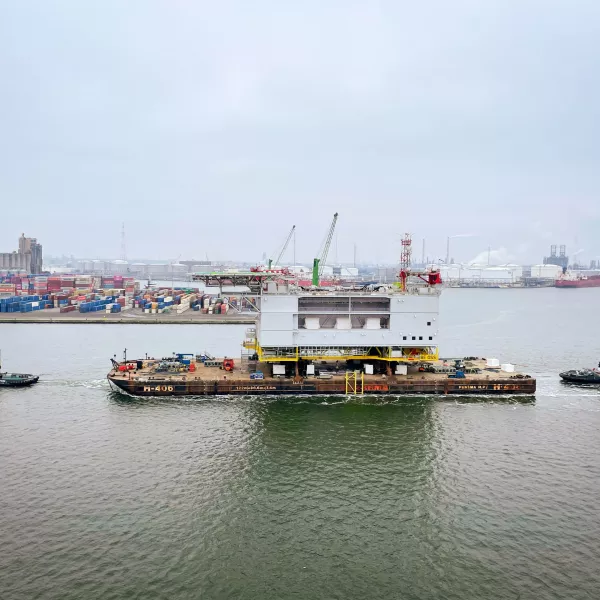 Dit gigantisch ‘stopcontact’ van 4.550 ton en maar liefst 5 verdiepingen zal gedurende een tweetal weken, in samenwerking met Equans, Manora Logistics en PSA Breakbulk én in opdracht van Elia, verder geassembleerd worden om daarna haar reis verder te zetten naar de Baltische Zee.